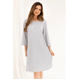Koszula nocna 167 J/25 to idealne połączenie klasycznego fasonu i subtelnego uroku. Wykonana w 100% z wysokiej jakości bawełny, gwarantuje komfort noszenia oraz przewiewność przez całą noc. Model posiada rękaw 3/4 i półokrągły dekolt, a przód ozdobiony został delikatnym nadrukiem. Lekko rozkloszowany krój ku dołowi pięknie układa się na sylwetce, zapewniając swobodę ruchów. Długość przed kolano sprawia, że koszula jest praktyczna zarówno na cieplejsze, jak i chłodniejsze noce.