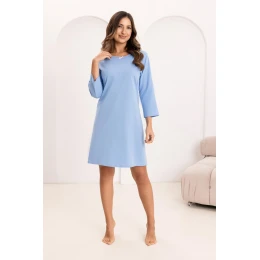 Dámská noční košile 179 W/26 REGINA je klasický a mimořádně pohodlný návrh vyrobený ze 100% přírodní bavlny. Hladká, jednolitá tkanina je měkká, vzdušná a příjemná k pokožce, což zaručuje pohodlný spánek po celý rok. Model má půlkruhový výstřih s ozdobným lemem a decentní mašličkou, které košili dodávají ženský a jemný charakter. 3/4 délky rukávů zaručují tepelný komfort a délka před kolena zajišťuje volnost pohybu a pohodlné nošení. Jedná se o ideální bavlněnou noční košili pro ženy, které ocení klasický styl a přírodní materiály.
