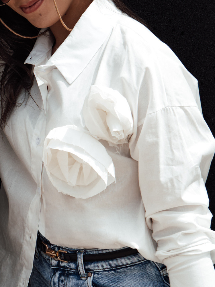 Odkryj nową definicję klasyki z tą koszulą, gdzie tradycyjny styl spotyka się z unikalnym akcentem – subtelnym kwiatowym wzorem na piersi. Zapinana na guziki i wyposażona w klasyczny kołnierz, koszula ta jest idealnym wyborem dla kobiet ceniących tradycję z nowoczesnym twistem. Doskonale sprawdzi się zarówno w biurze, jak i na wyjątkowe okazje, dodając elegancji i oryginalności każdej stylizacji.