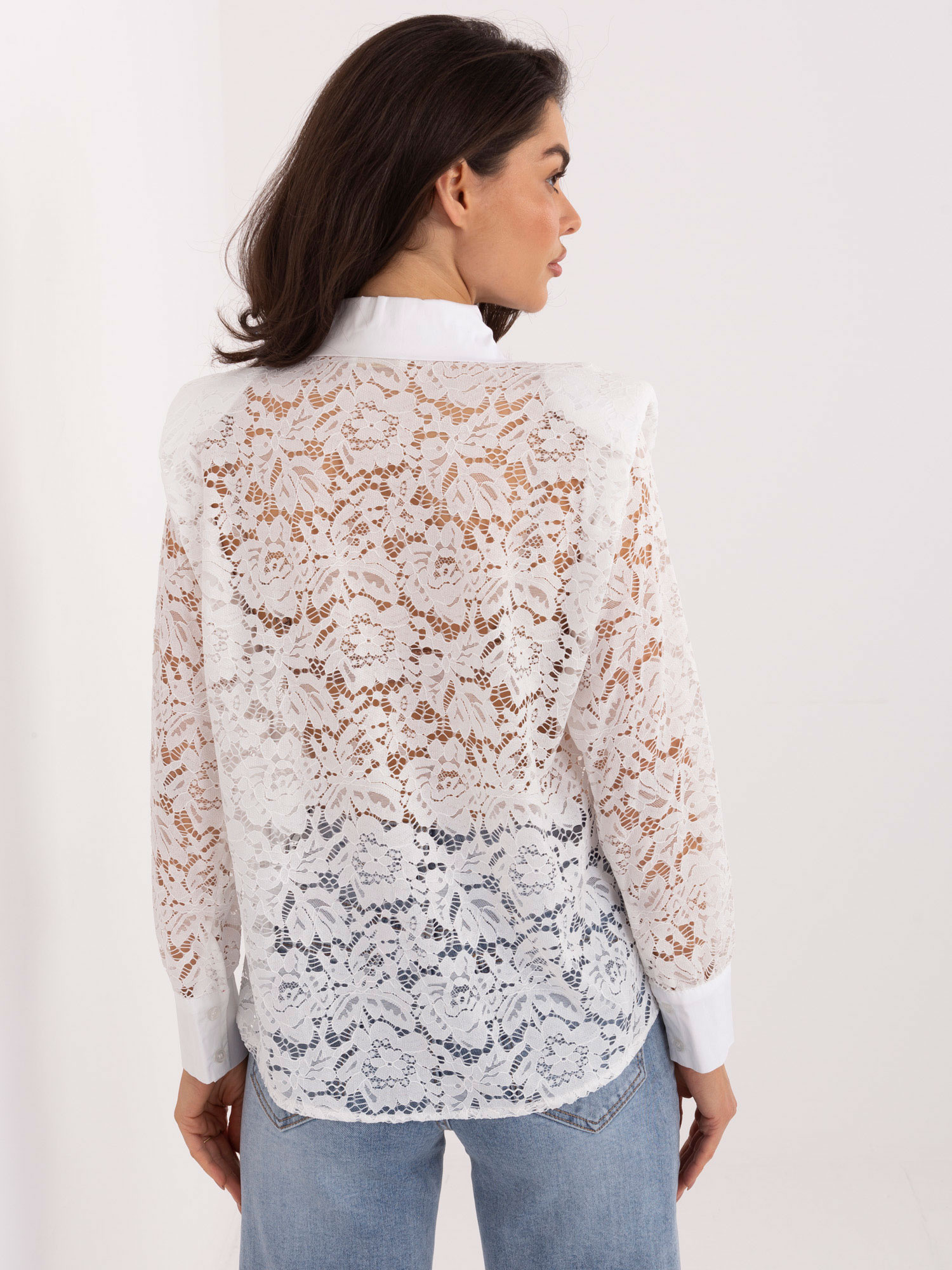 Dámská krajková košile na knoflíčky, s límečky. U krku ozdobná spona.