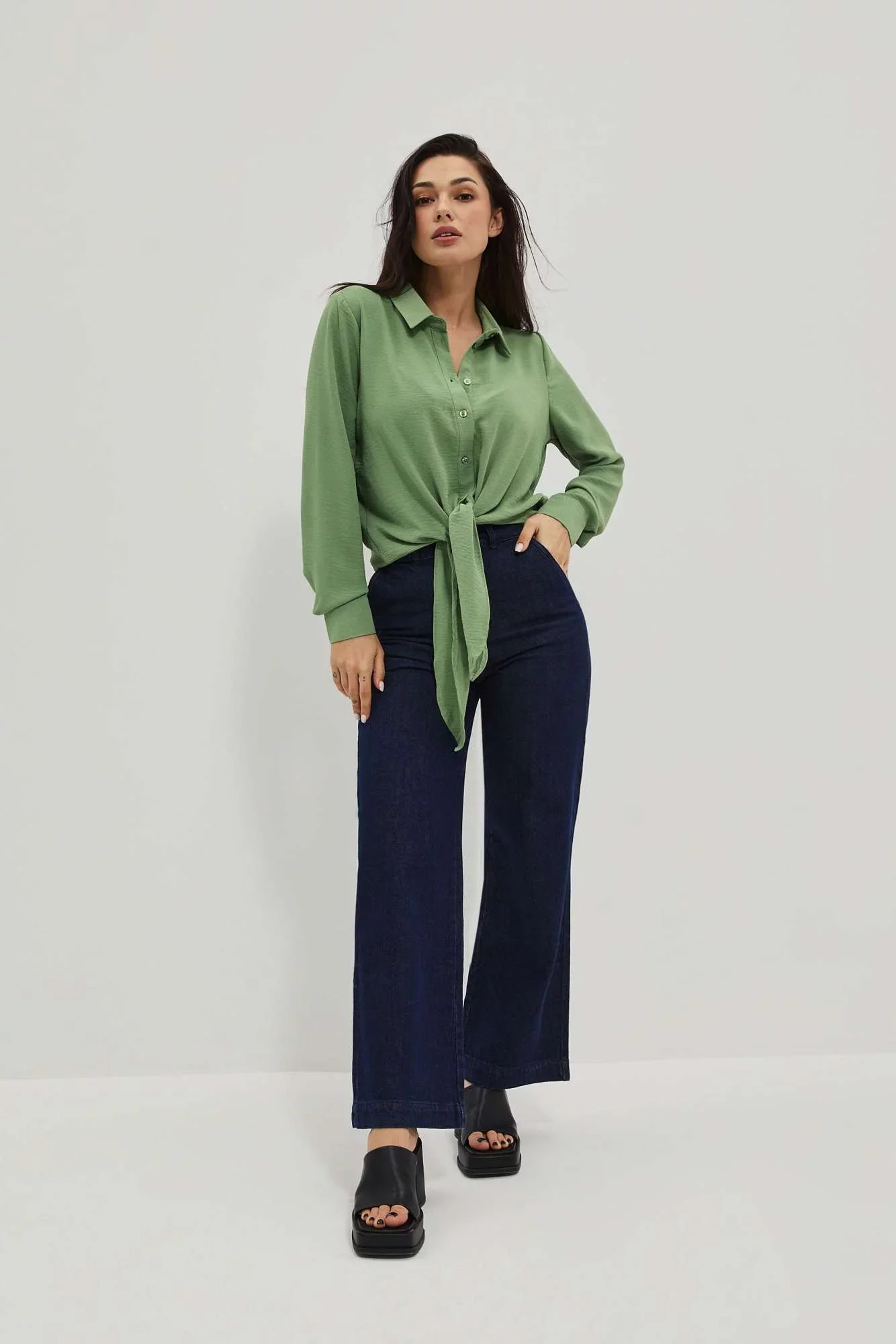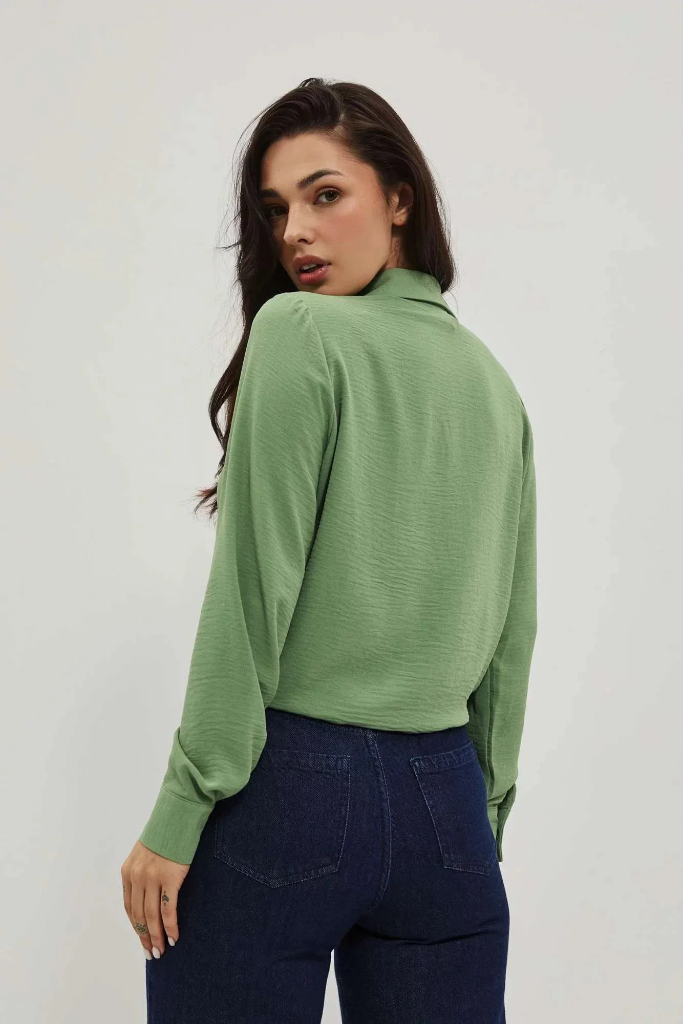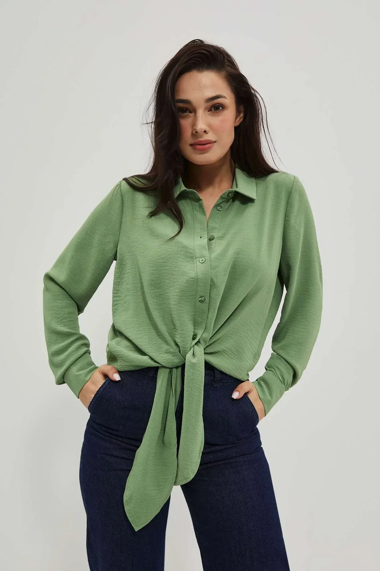 Dámské rozšířené košilové šaty B257 olivové - BEwear