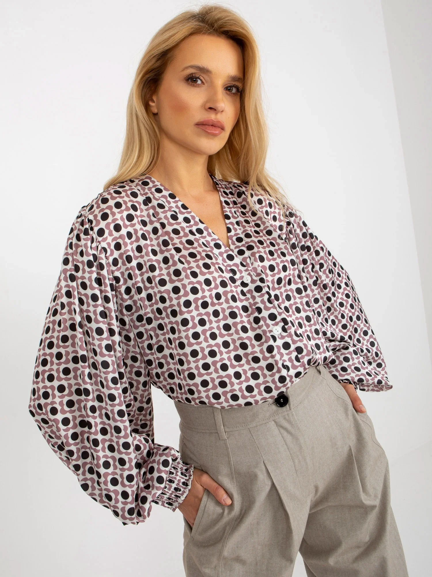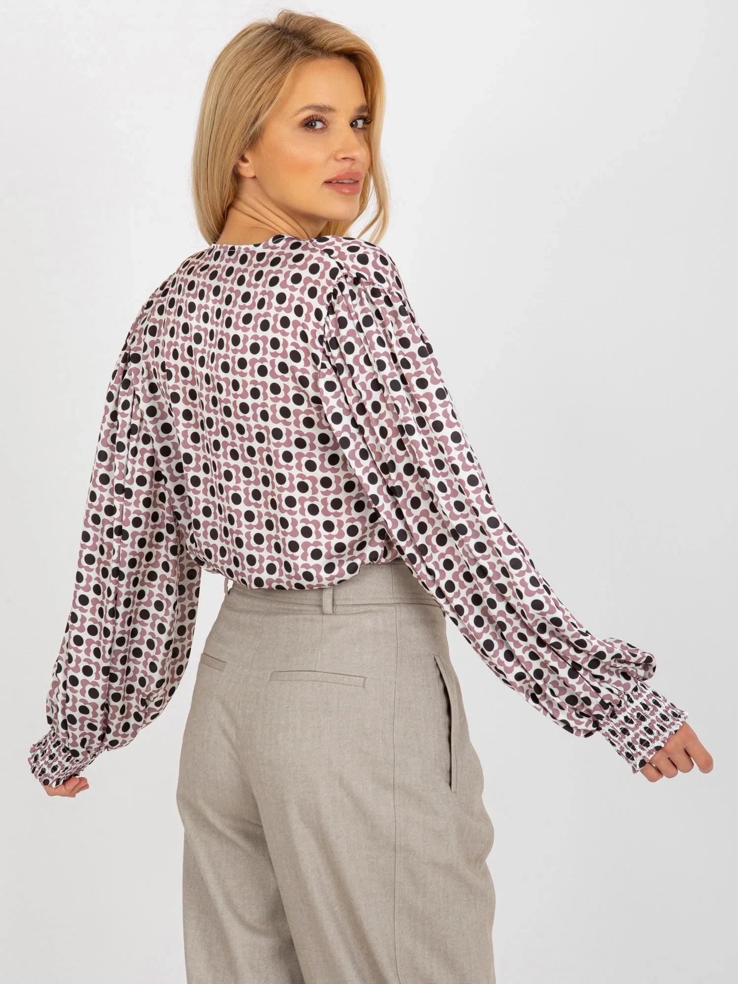 Růžové tričko s potiskem a širokými rukávy .