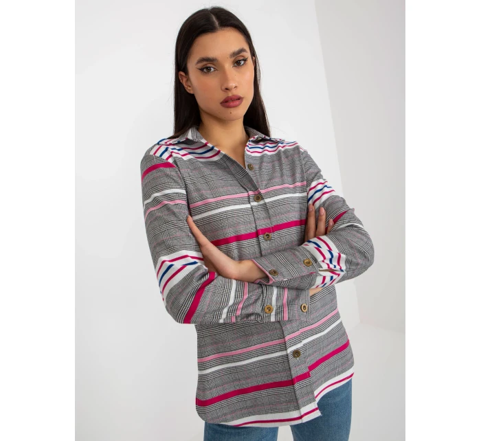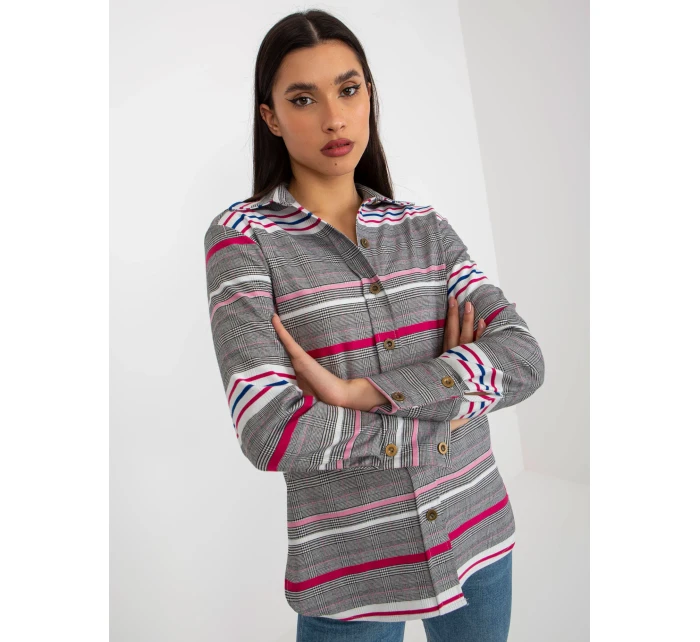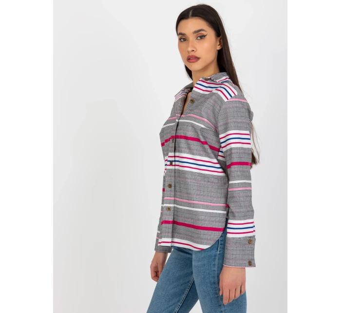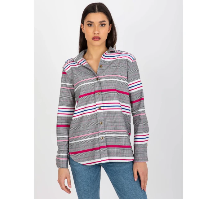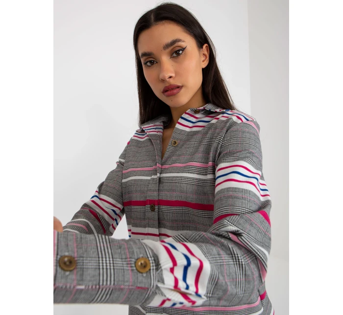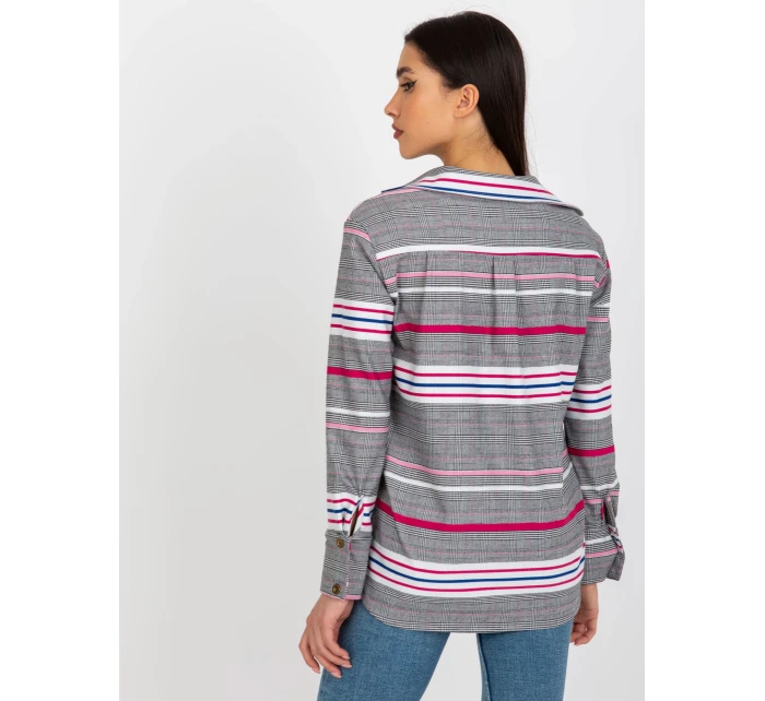 Dámská bílo-růžová pruhovaná a kostkovaná košile .
