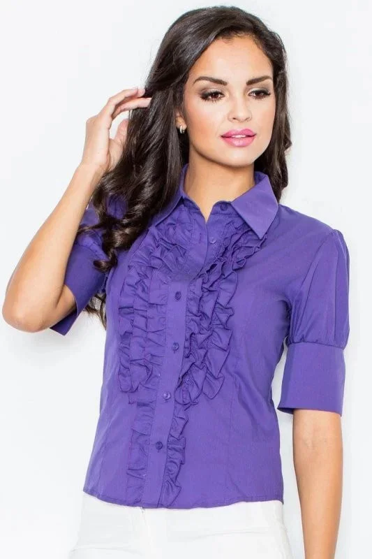 Dámská úchvatná košile s volány a kratšími rukávy.