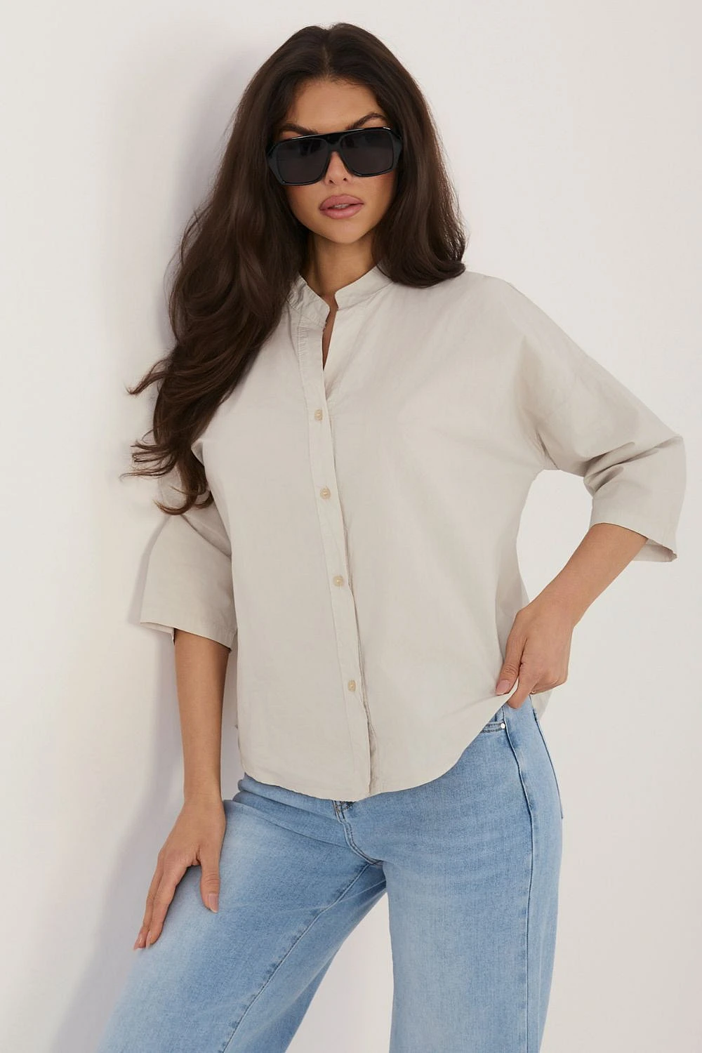 Halena dámská ve tvaru klasického kroje je elegantní a univerzální volbou, ideální jak do každodenního nošení, tak do práce. Její hladký vzor jí dodává nadčasový charakter, díky čemuž ji snadno sladíte s různými stylizacemi, od volnočasových po formální. Model s kratší délkou skvěle ladí s kalhotami s vysokým pasem nebo sukněmi, zdůrazňujícími proporce postavy. Košile zapínána na knoflíky zajistí pohodlí a praktičnost, a decentní stojka spolu s výstřihem ve tvaru srdce dodává celku moderní a ženský vzhled. Rukáv ve délce 3/4 je skvělým řešením na teplejší dny nebo do práce v interiéru, poskytující pohodlí a volnost pohybu. Vyrobena z vysoce kvalitní bavlny, košile je příjemná na kůži, prodyšná a pohodlná na nošení po celý den. Jedná se o stylový a funkční kousek šatníku, který se hodí do mnoha každodenních i kancelářských stylizací.