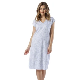 Dámské tričko s krátkým rukávem ze vzorované bavlny, s výstřihem a délkou ke kolenům.