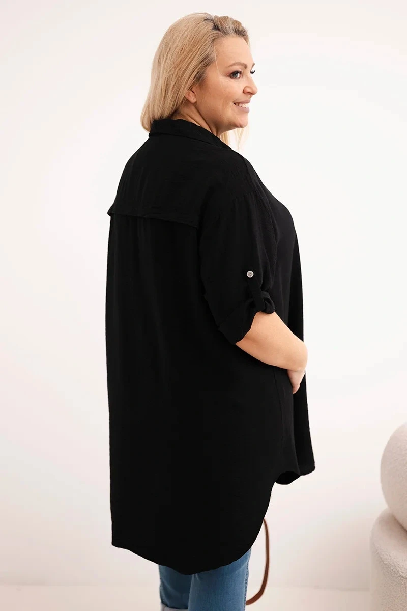 Dámská košile Plus Size z viskózy s delší zadní částí černá