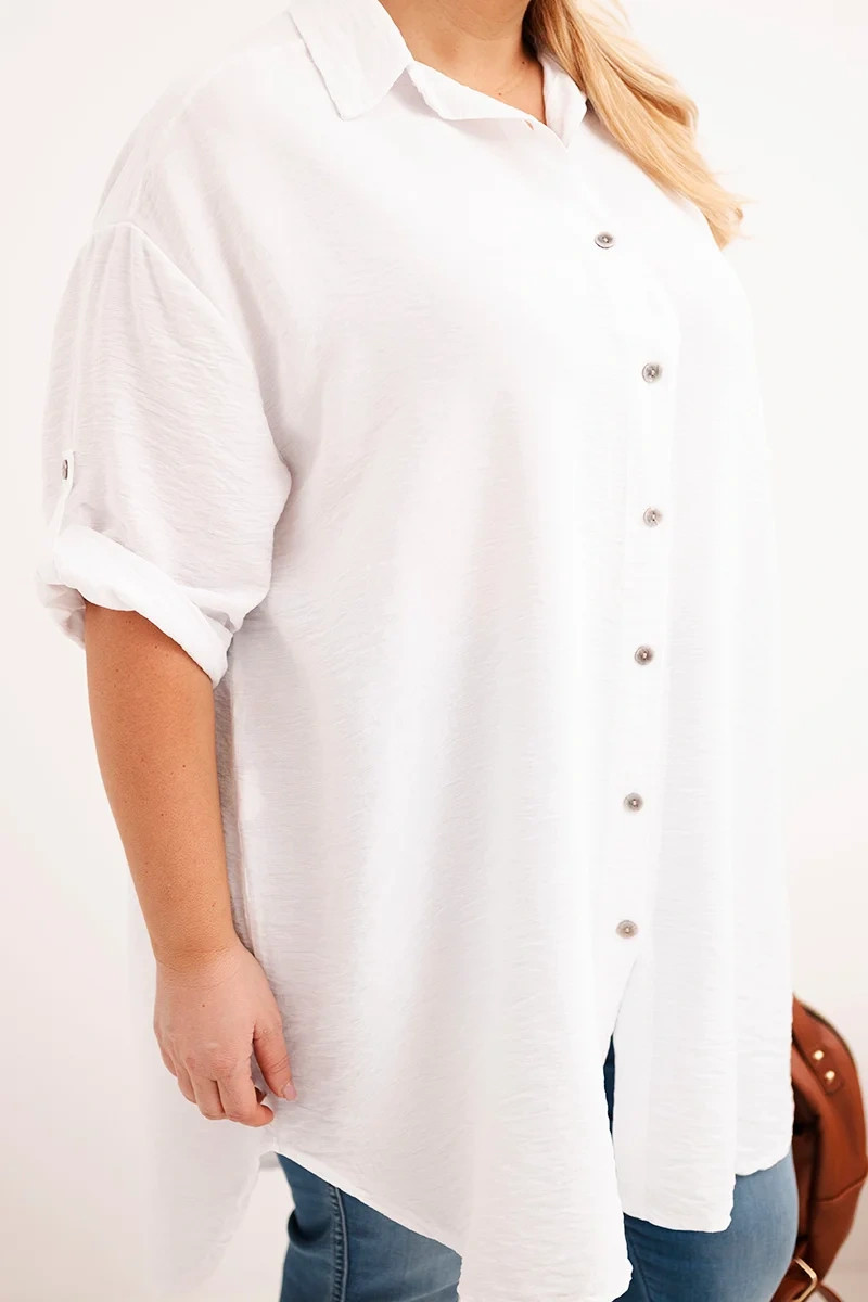 Dámská košile Plus Size z viskózy s delším zadním dílem bílá