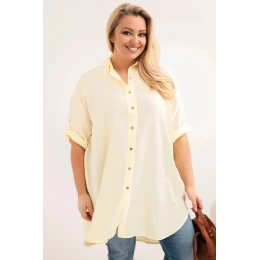 3. Dámská košile Plus Size z viskózy s delším zadním dílem žlutá