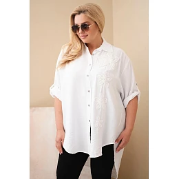 Dámská košile Plus Size z viskózy s květinovou výšivkou bílá