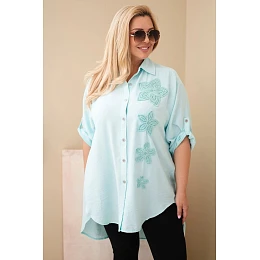 Dámská košile Plus Size z viskózy s květinovou výšivkou mentolová
