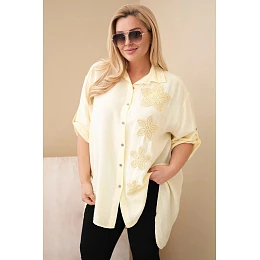 Dámská košile Plus Size z viskózy s květinovou výšivkou žlutá