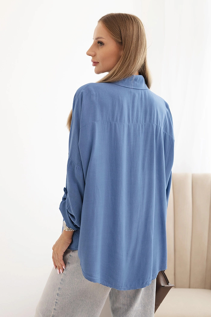 Dámská košile s viskózou a ozdobnými knoflíky a džínovým límcem modrá