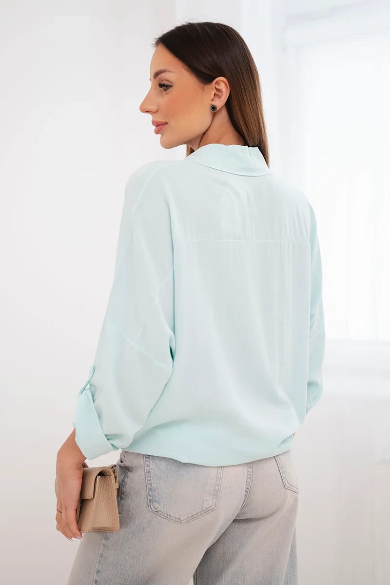 Dámská košile s viskózou a ozdobnými knoflíky a límečkem mátová