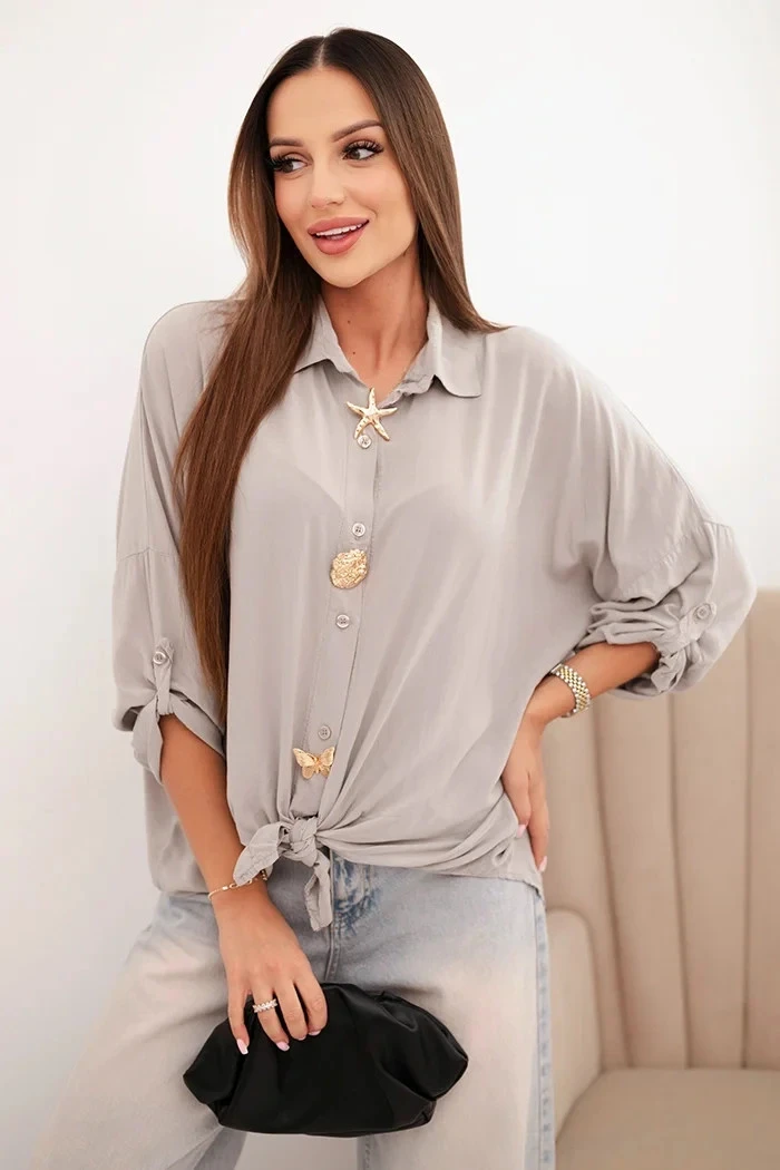 Dámská košile s viskózou a ozdobnými knoflíky a límečkem tmavě béžová