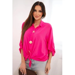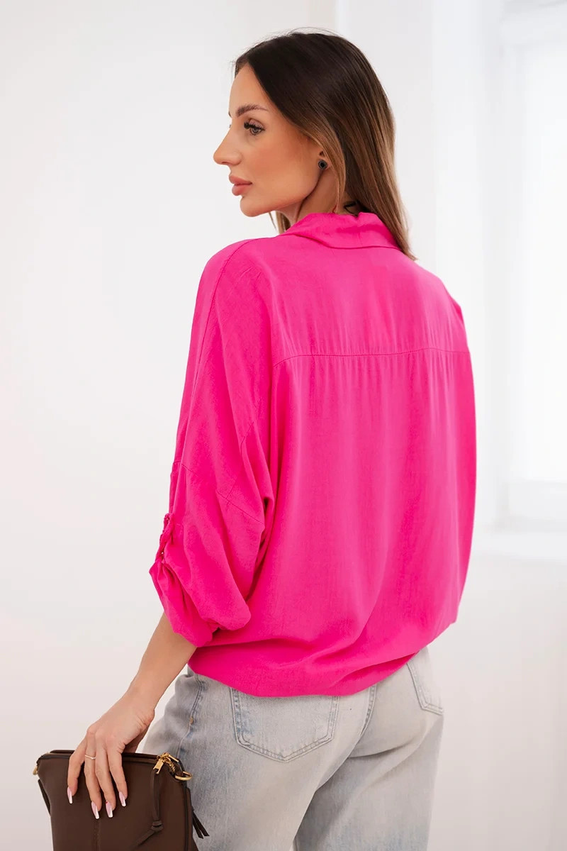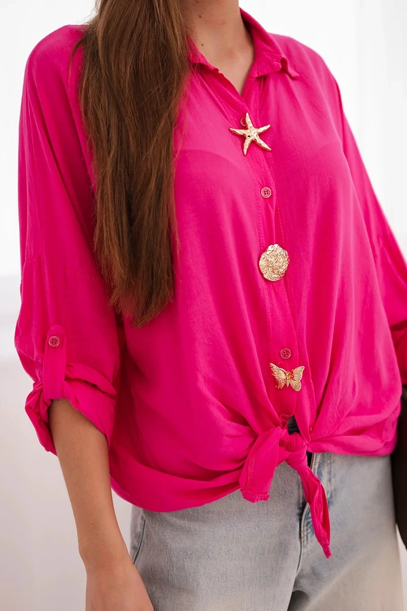 Dámská košile s viskózou, ozdobnými knoflíky a límečkem růžová