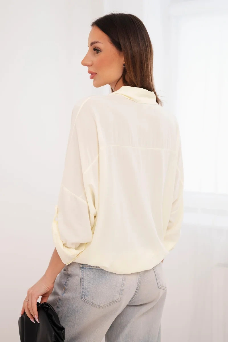 Dámská košile s viskózou, zdobnými knoflíky a límcem žlutá