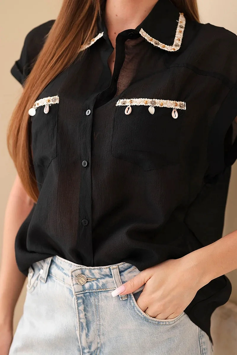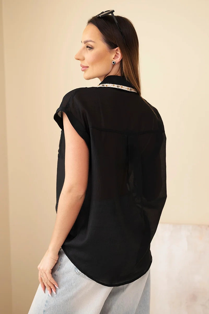 Dámská košile z model 22048777 s ozdobným límečkem a kapsami černá - K-Fashion