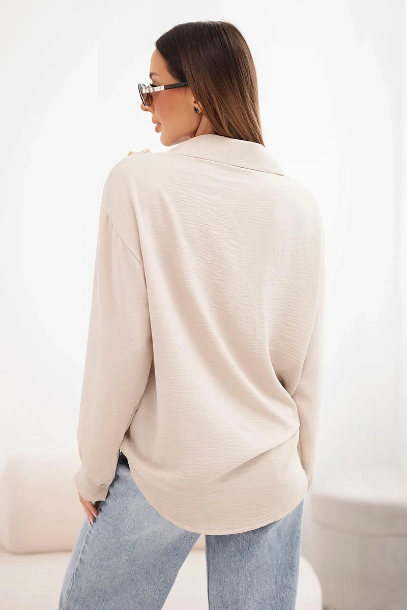 Dámská košile z viskózy s dlouhým rukávem a volánky béžová
