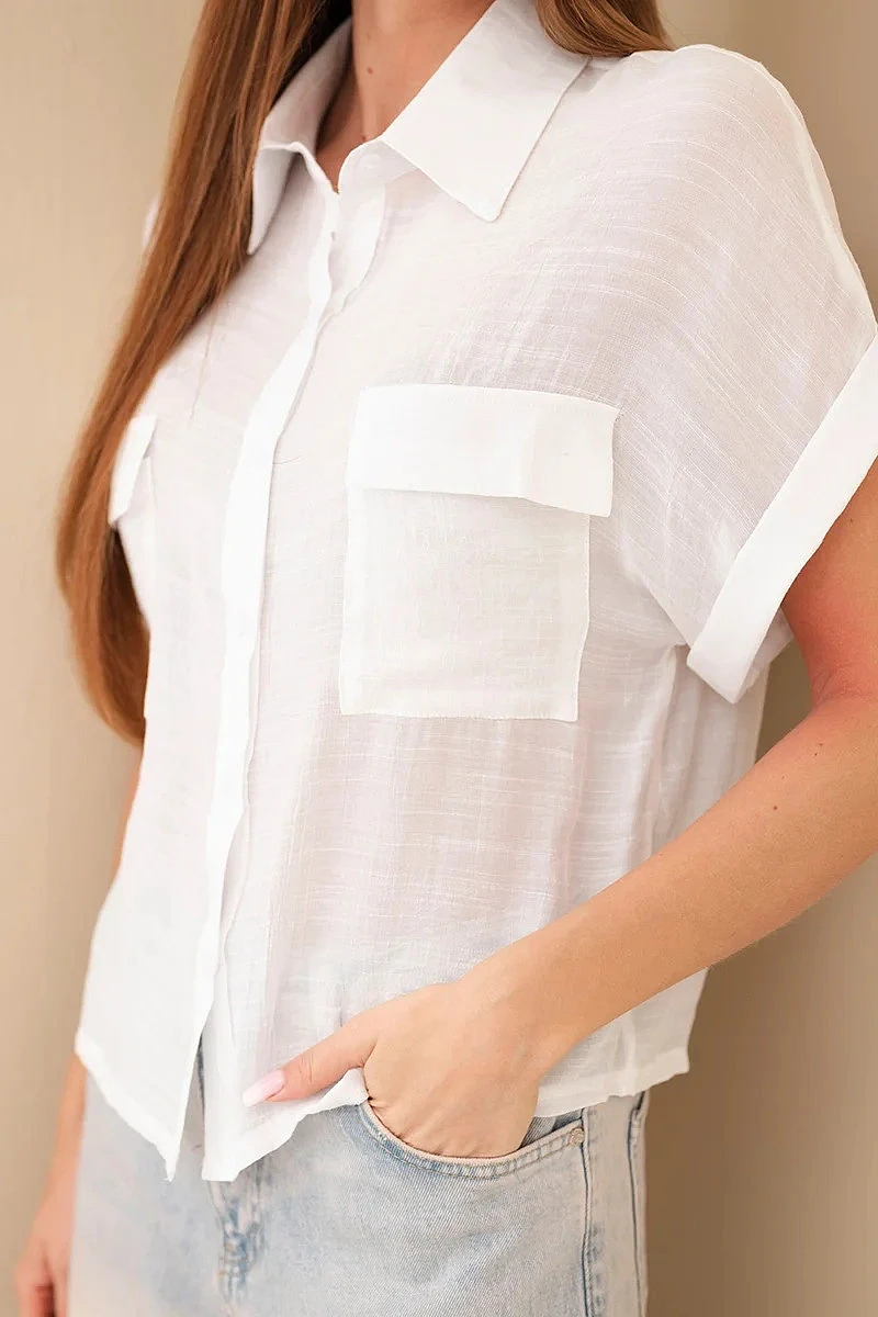 Dámská košile z viskózy s krátkým rukávem a kapsami ecru