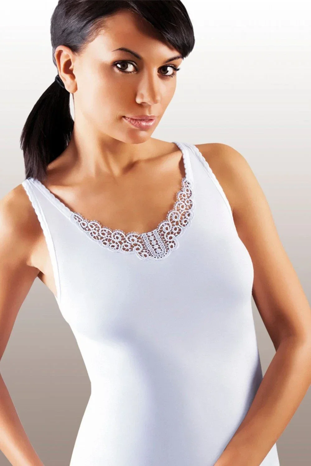 Dámská košilka Ailin Emili - bílá barva - kulatý výstřih - ve výstřihu bílá krajka - širší ramínka - jednoduchý design - pohodlně se nosí - příjemný materiál - pod oblečením nejde vidětMateriálové složení: 100% bavlna
