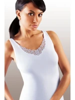 Dámská košilka Ailin Emili - bílá barva - kulatý výstřih - ve výstřihu bílá krajka - širší ramínka - jednoduchý design - pohodlně se nosí - příjemný materiál - pod oblečením nejde vidět