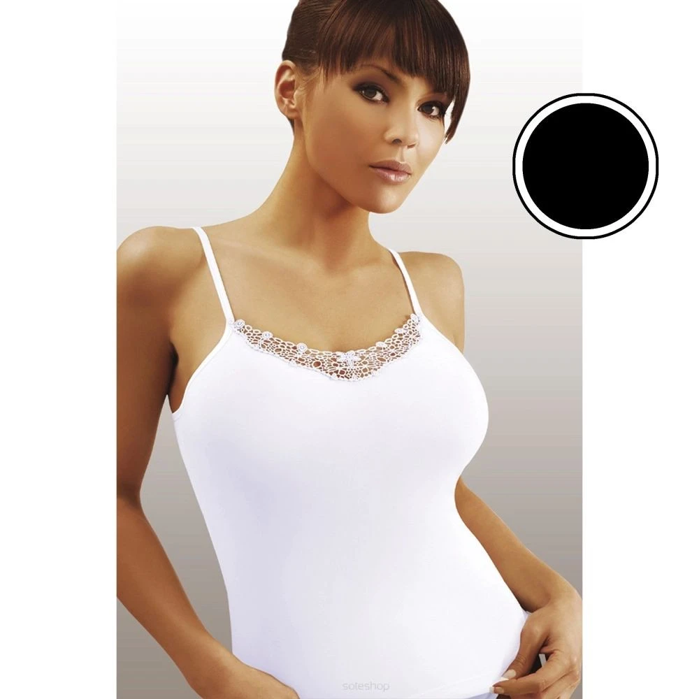 Dámská košilka Edna black EMILI - černá barva - z vysoce jakostní bavlny - zdobené jemnou krajkou