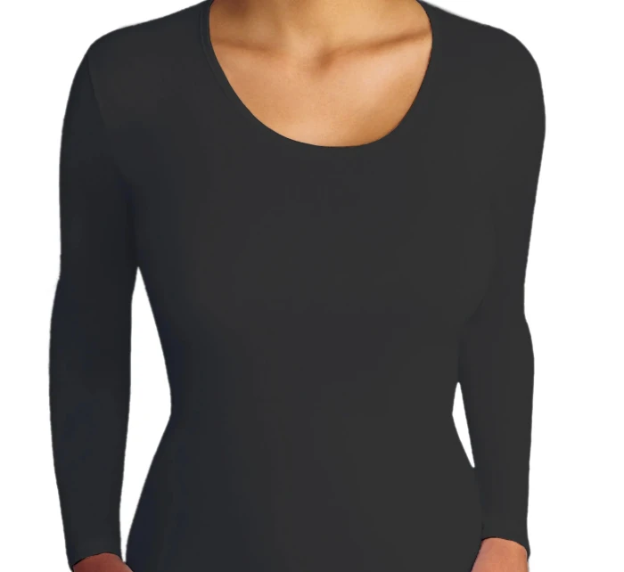Dámská košilka Lena black plus LENA - černá barva - z vysoce jakostní bavlny - dlouhé rukávy - bezešvá - ideální pod přiléhavé oblečení