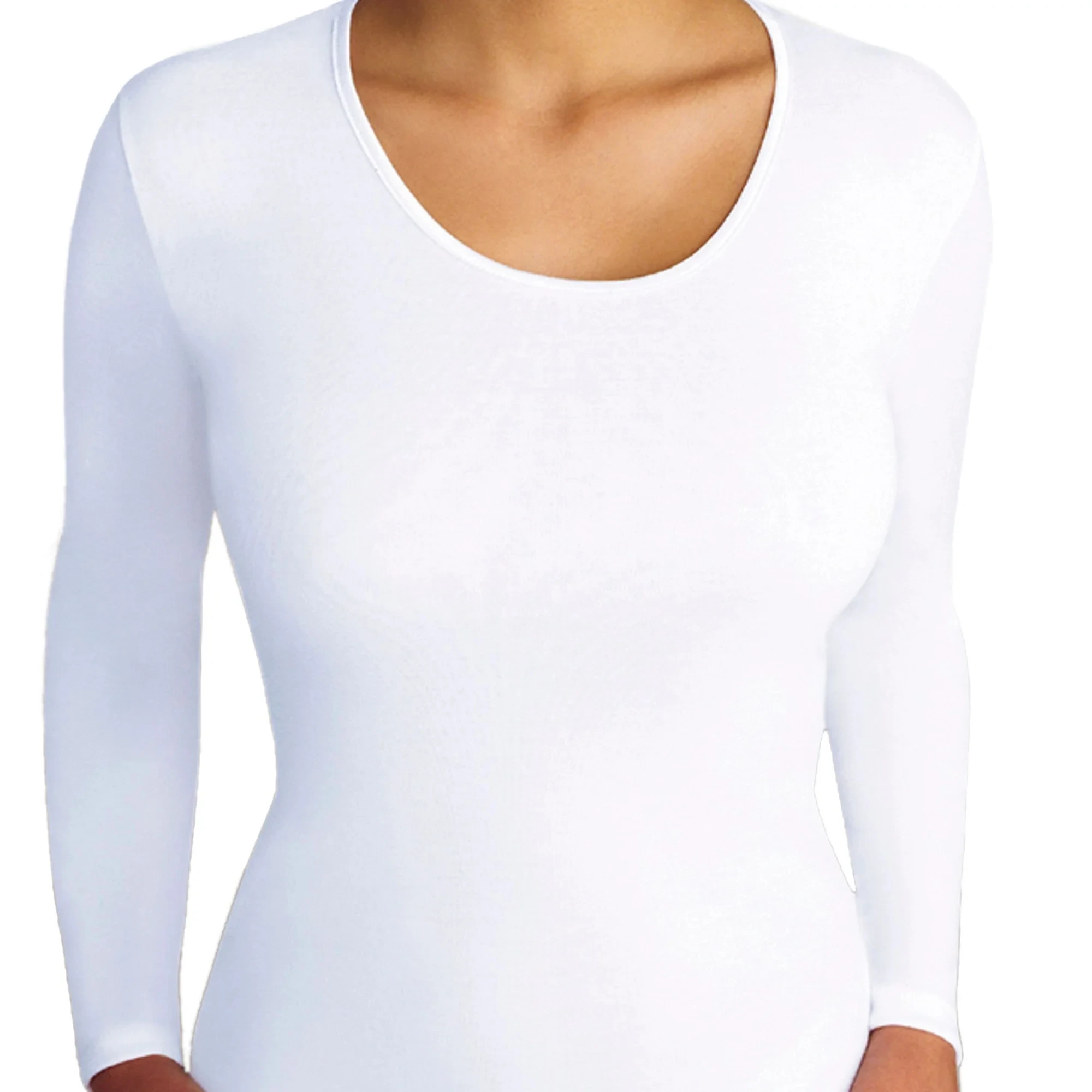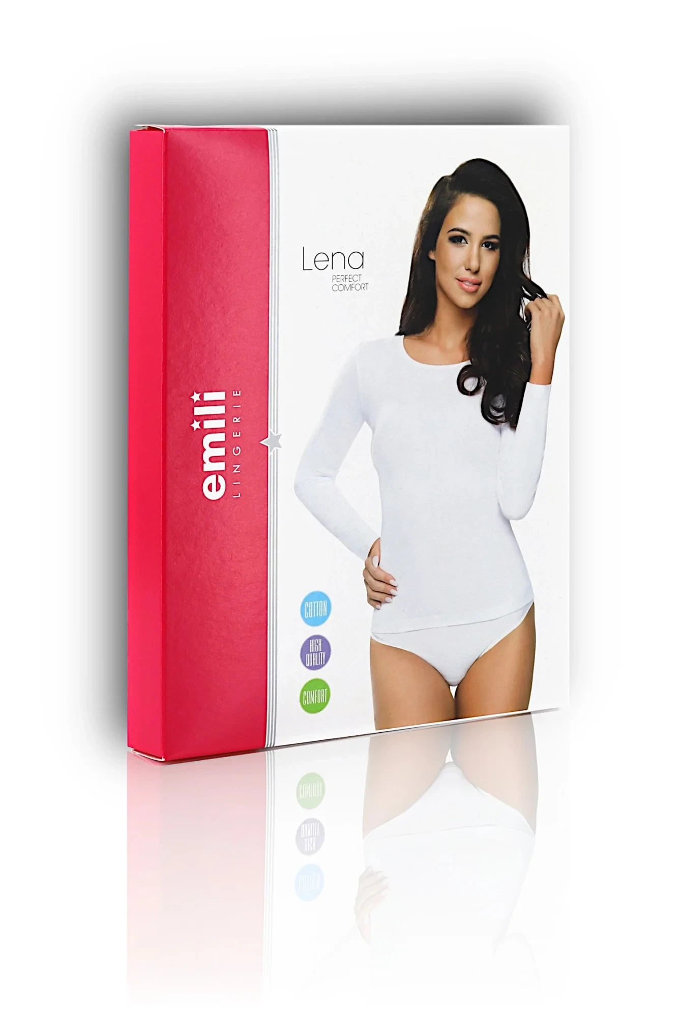 Dámská košilka Lena white EMILI - bílá barva - z vysoce jakostní bavlny - dlouhé rukávy - bezešvá - ideální pod přiléhavé oblečení