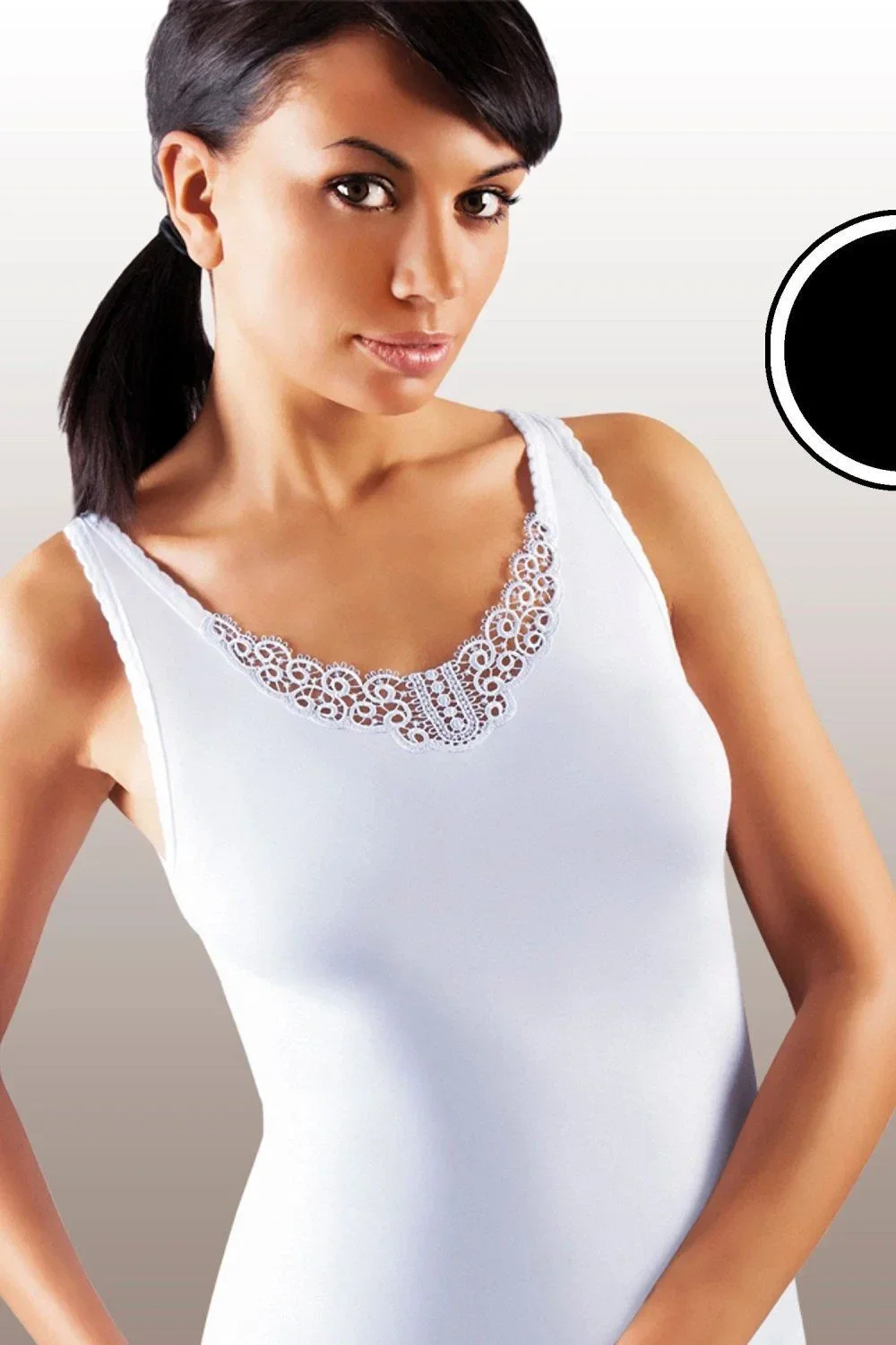Dámská košilka Ailin Emili - černá barva - kulatý výstřih - ve výstřihu bílá krajka - širší ramínka - jednoduchý design - pohodlně se nosí - příjemný materiál - pod oblečením nejde vidět