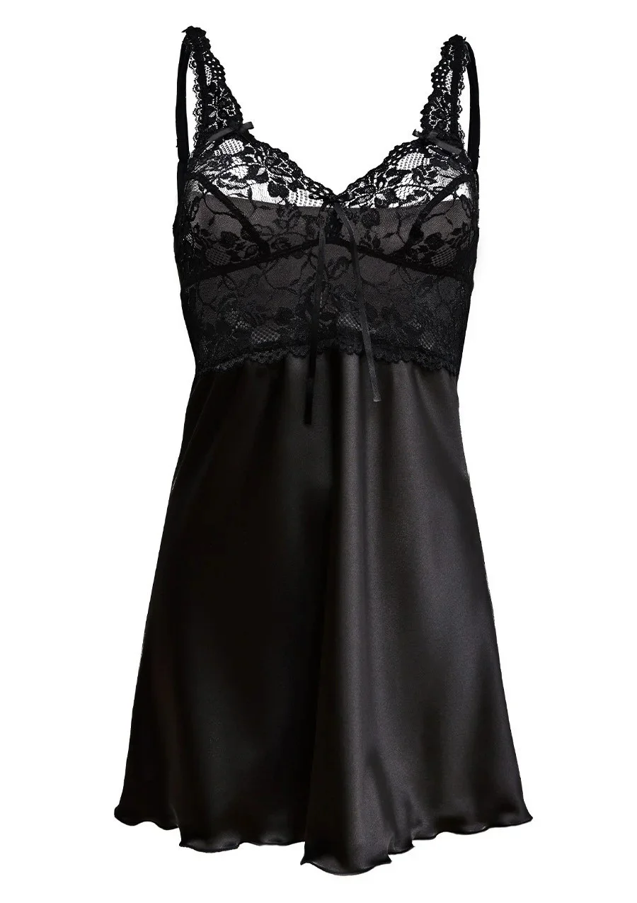 Dámská košilka ušitá z jemné tylové síťky a efektní květované krajky. Košíčky jsou měkké a pěkně zvýrazňují prsa. Ramínka mají regulaci. Spodní část košilky je zakončená volánkem. V kompletu jsou tanga s tenkými pásky.
