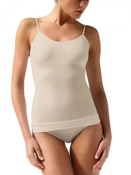Canotta spalla stretta Controlbody Basic-dámská stahovací formující bezešvá košilka s úzkými ramínky. Středně sílný stahovací efekt zformuje a zeštíhlí postavu. Košilka je vyrobena z jemného elastického mikrovlákna, které se vyznačuje vysokou prodyšností, odváděním vlhkosti a také pohodlností pro celodenní nošení díky bezešvé technologii.