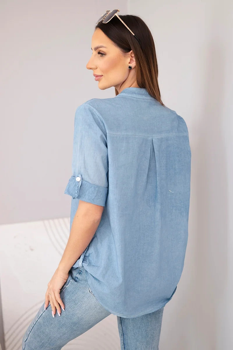 Dámská košilová bavlněná halenka s krátkým rukávem a kapsou model 22048815 - K-Fashion