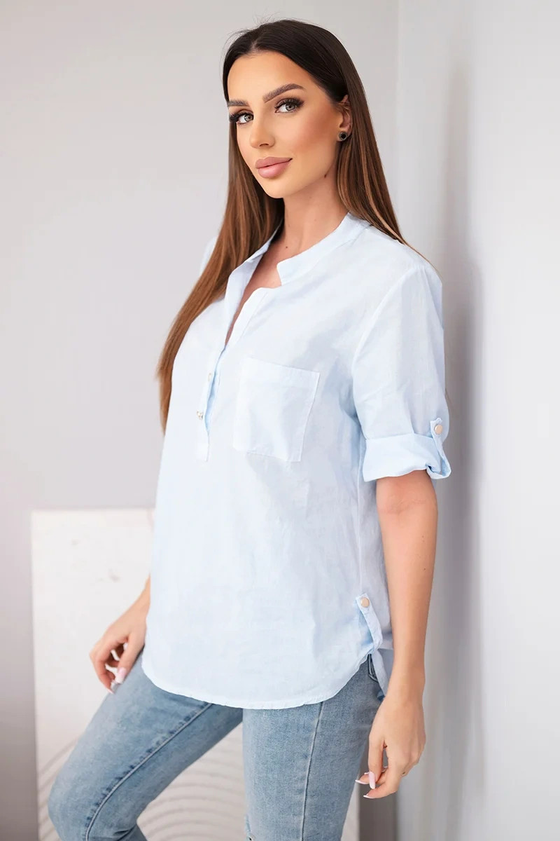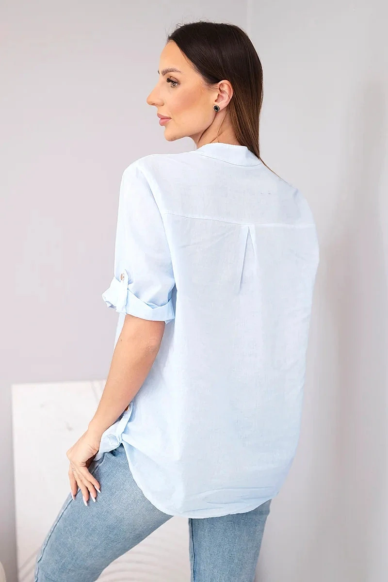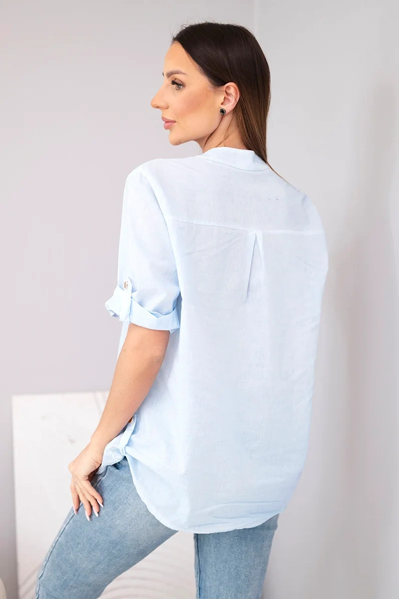 Dámská košilová bavlněná halenka s krátkým rukávem a model 22048805 modrá - K-Fashion