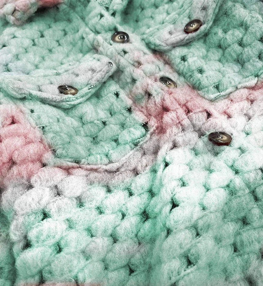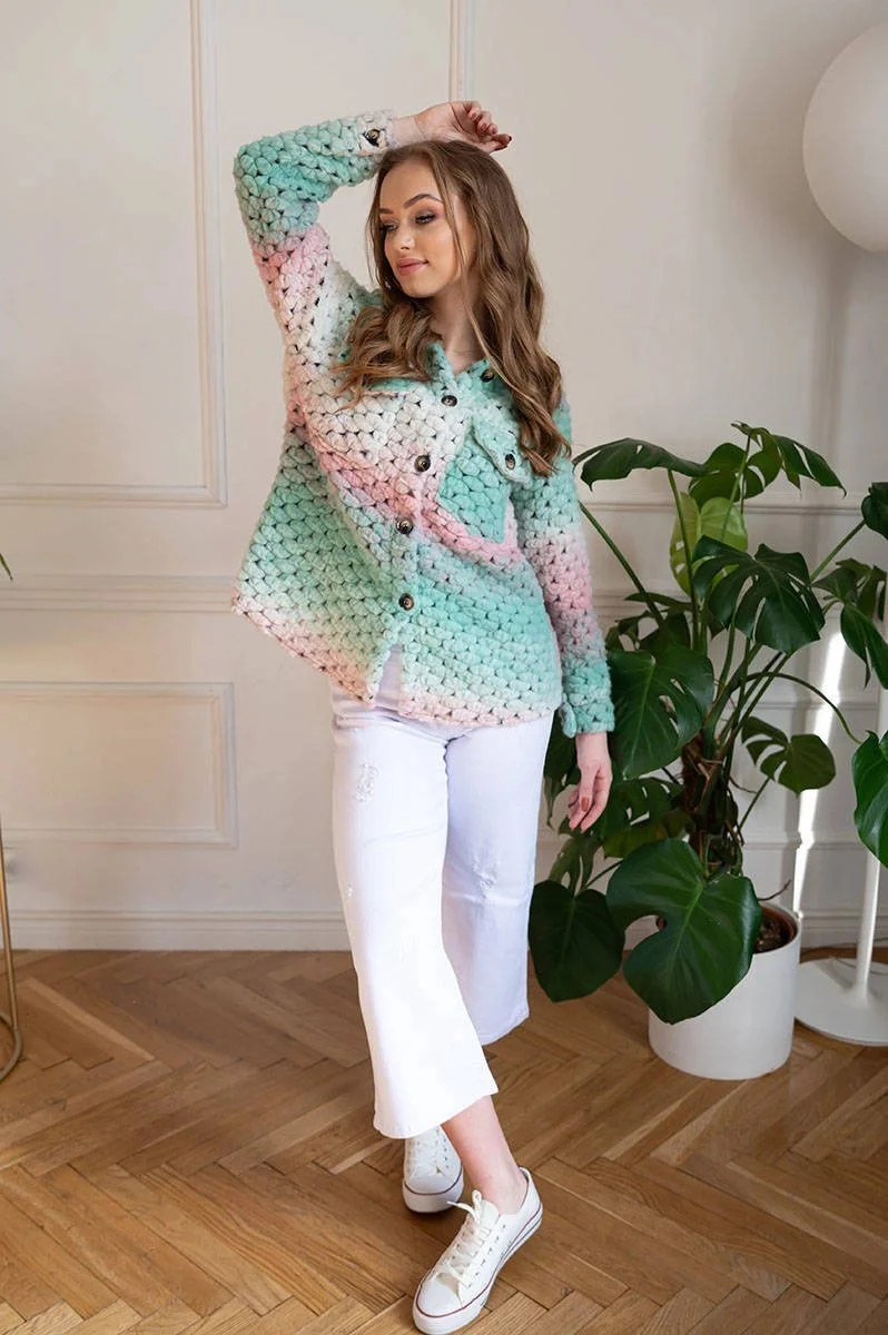 Bunda má jednoduchý střih typu "oversize". Model má stojáček a dvě kapsy. Rukávy lemují manžety se zapínáním na knoflíky. Bunda má délku k bokům.