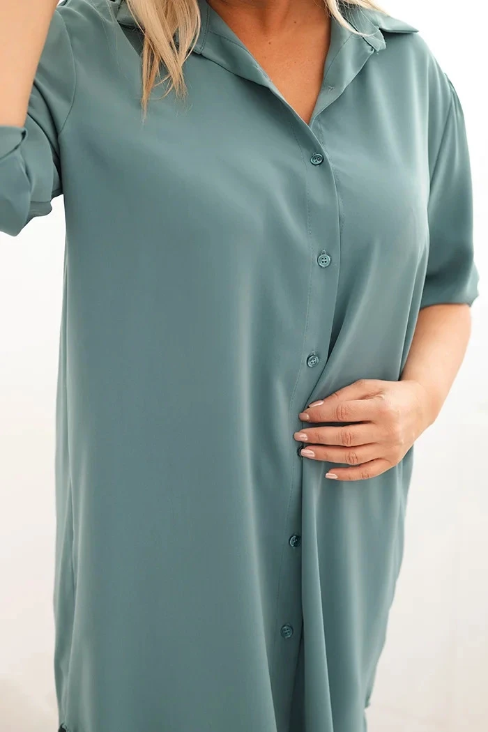 Dámská košilová šaty Plus Size je dokonalou kombinací elegance a pohodlí v každodenním stylu. Její volný střih se krásně přizpůsobí postavě a zajišťuje plné pohodlí při nošení bez ohledu na příležitost. Klasický límec, knoflíková léga po celé délce a praktické rukávy 3/4 s možností ohrnutí činí tyto šaty univerzální volbou na mnoho sezón.