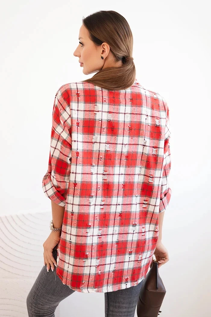 Dámská kostkovaná bavlněná košile s efektem model 21402218 červená - K-Fashion