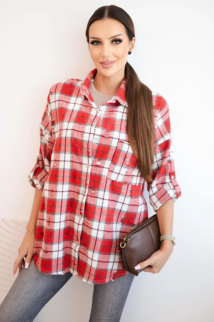 Dámská kostkovaná bavlněná košile s efektem obnošení červená
