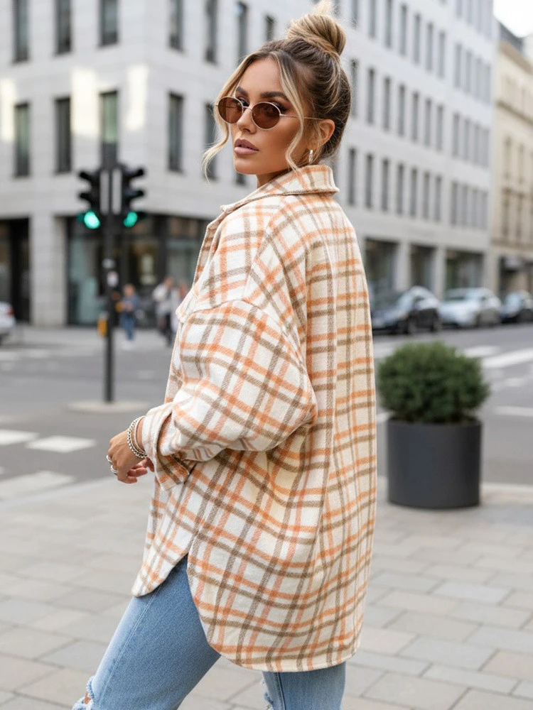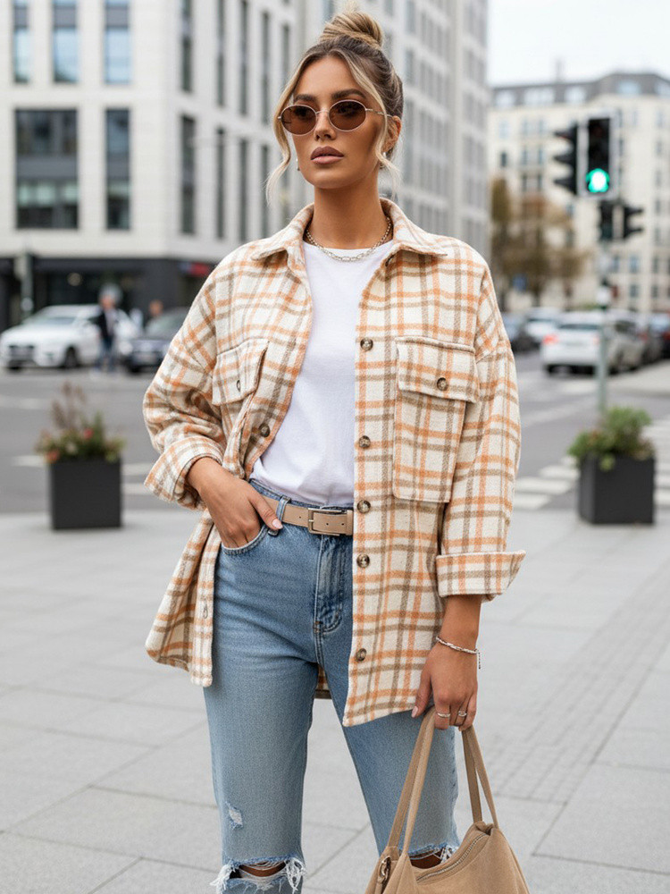 Koszula o luźnym kroju oversize zapewnia swobodę ruchów i wygodę noszenia na co dzień. Wzór w kratę nadaje jej wyrazisty, casualowy charakter, który łatwo dopasować do różnych stylizacji. Dwie duże kieszenie na przodzie zwiększają funkcjonalność i podkreślają użytkowy styl. Materiał z dodatkiem wełny zapewnia przyjemne odczucie ciepła w chłodniejsze dni.