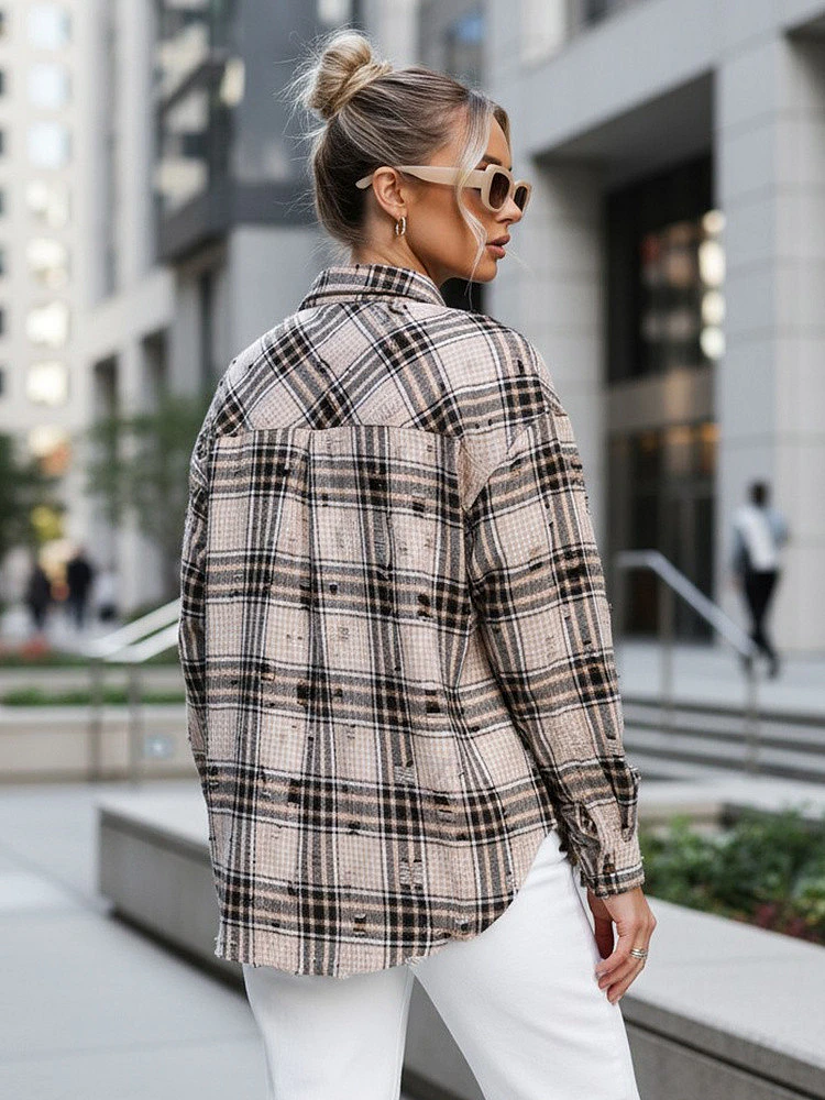 Dobře se kombinuje s džínami, legínami a látkovými kalhotami a nosí se zapnutá nebo rozepnutá jako lehká svrchní vrstva. Třepení dodává vašemu oblečení dekorativní prvek a dodává mu charakter, aniž by narušovalo klasický tvar košile.