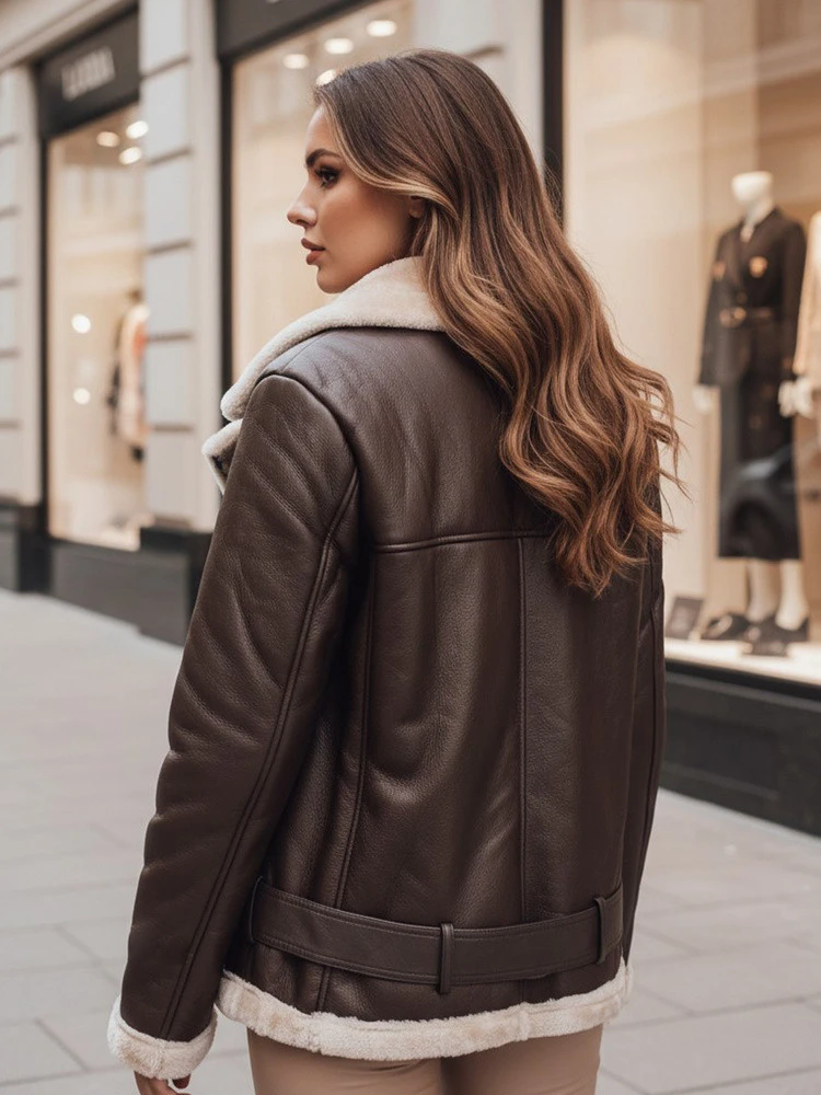 Dámská kožená bunda s ovčí kůží hnědá Dstreet model 21995436 - FashionStreet