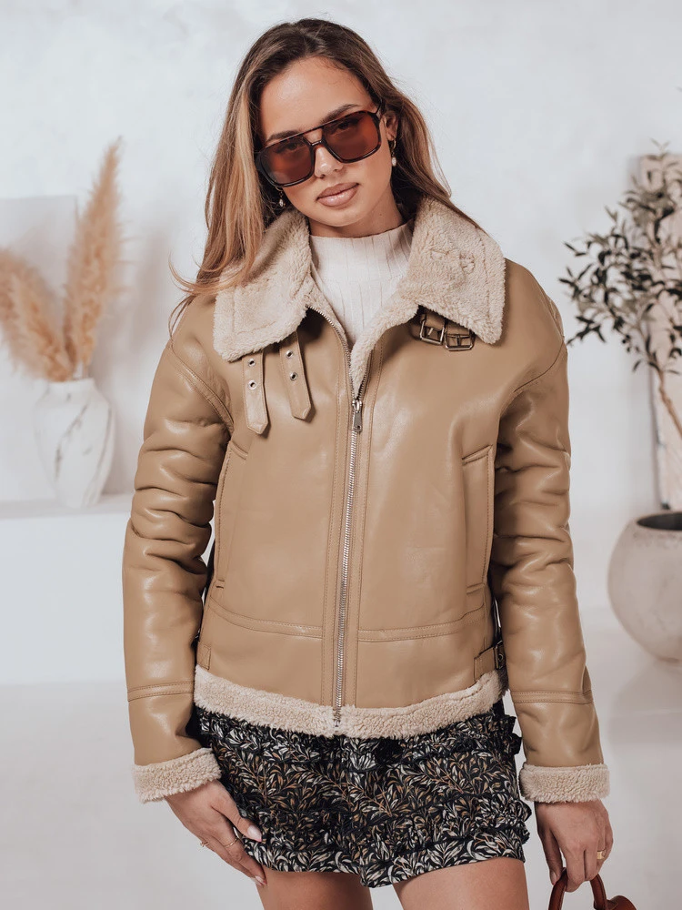 Dámská kožená bunda s ovčí kůží khaki Dstreet model 21982039 - FashionStreet