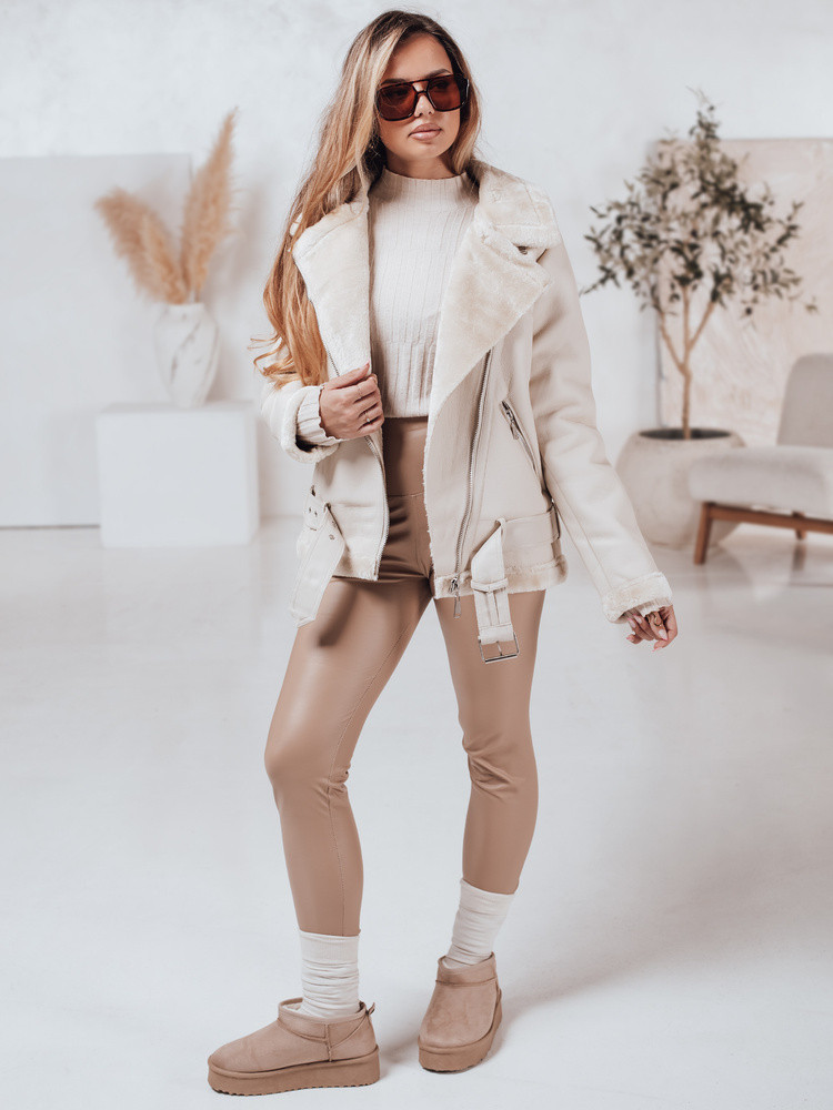 Dámská kožená bunda s ovčí kůží NORFDIMA bílá FashionStreet TY4735