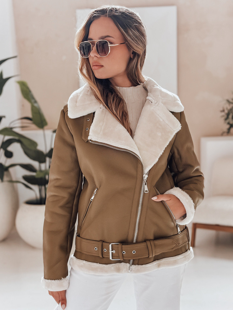 Dámská kožená bunda s ovčí kůží NORFDIMA camel FashionStreet TY4738