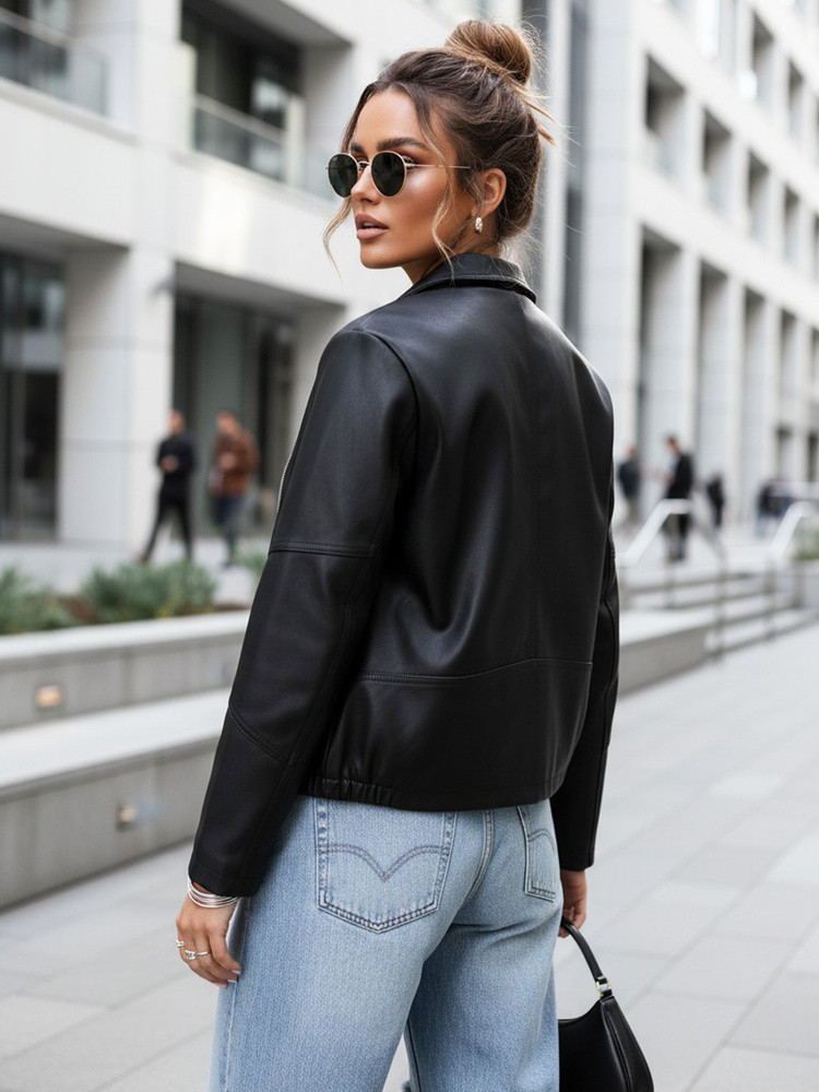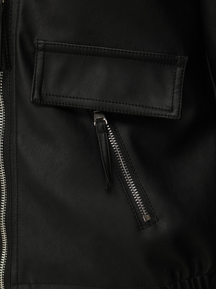 Kožená ramoneska kombinuje nadčasový střih s moderním zpracováním. Krátký střih zvýrazňuje siluetu a hodí se k džínům nebo šatům. Zapínání na zip jí dodává osobitý, lehce rockový styl. Model byl vyroben z ekokůže, která je praktickou alternativou přírodní kůže.