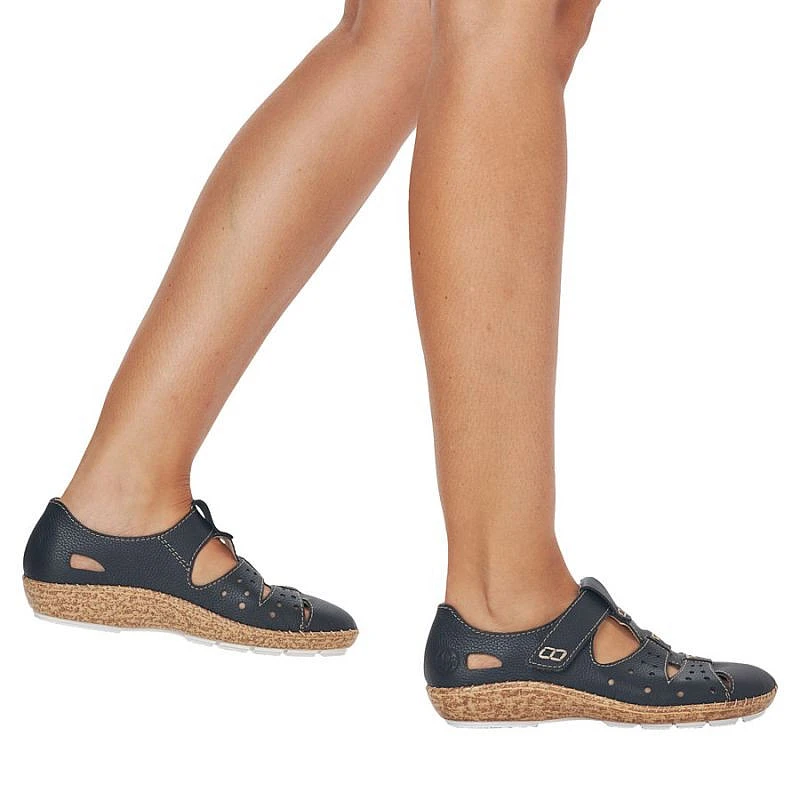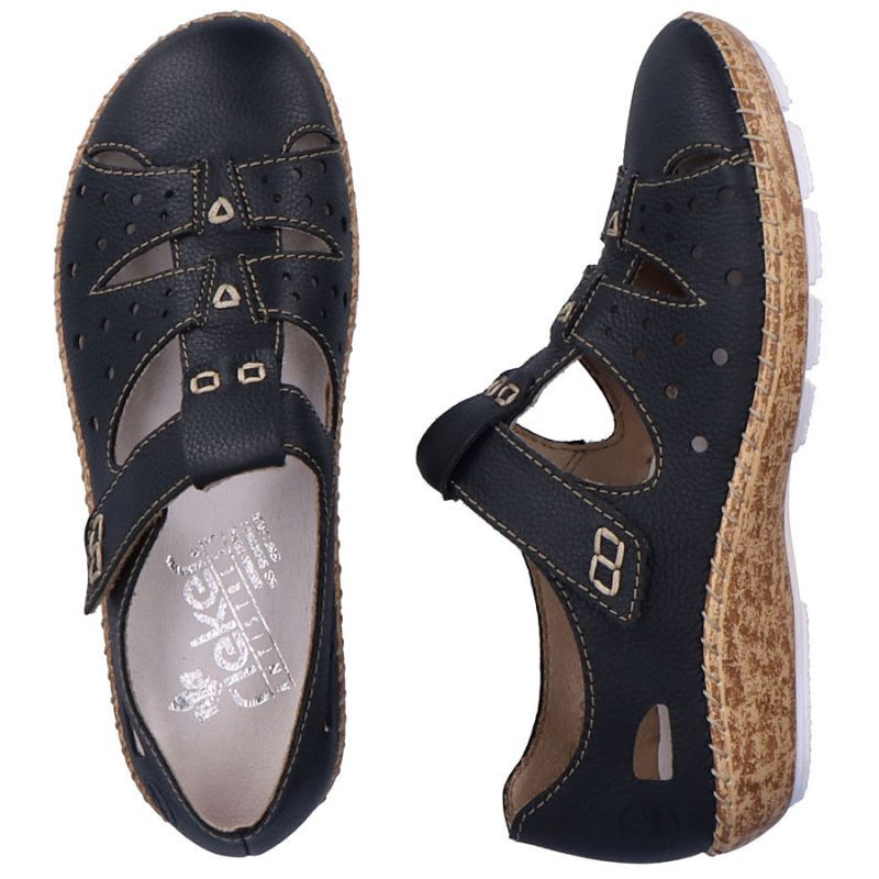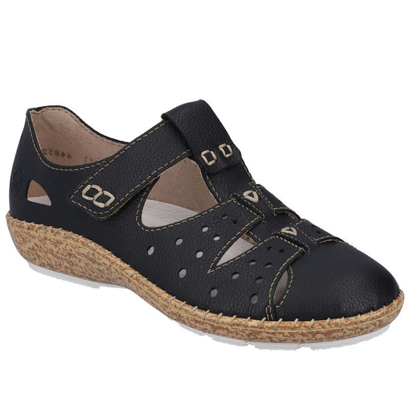 Dámská kožená pohodlná obuv na suchý zip s otevřenou špičkou černá Rieker 44852-14