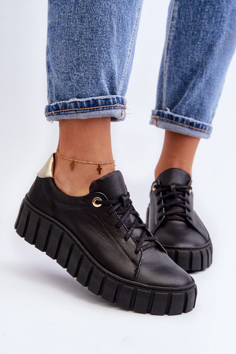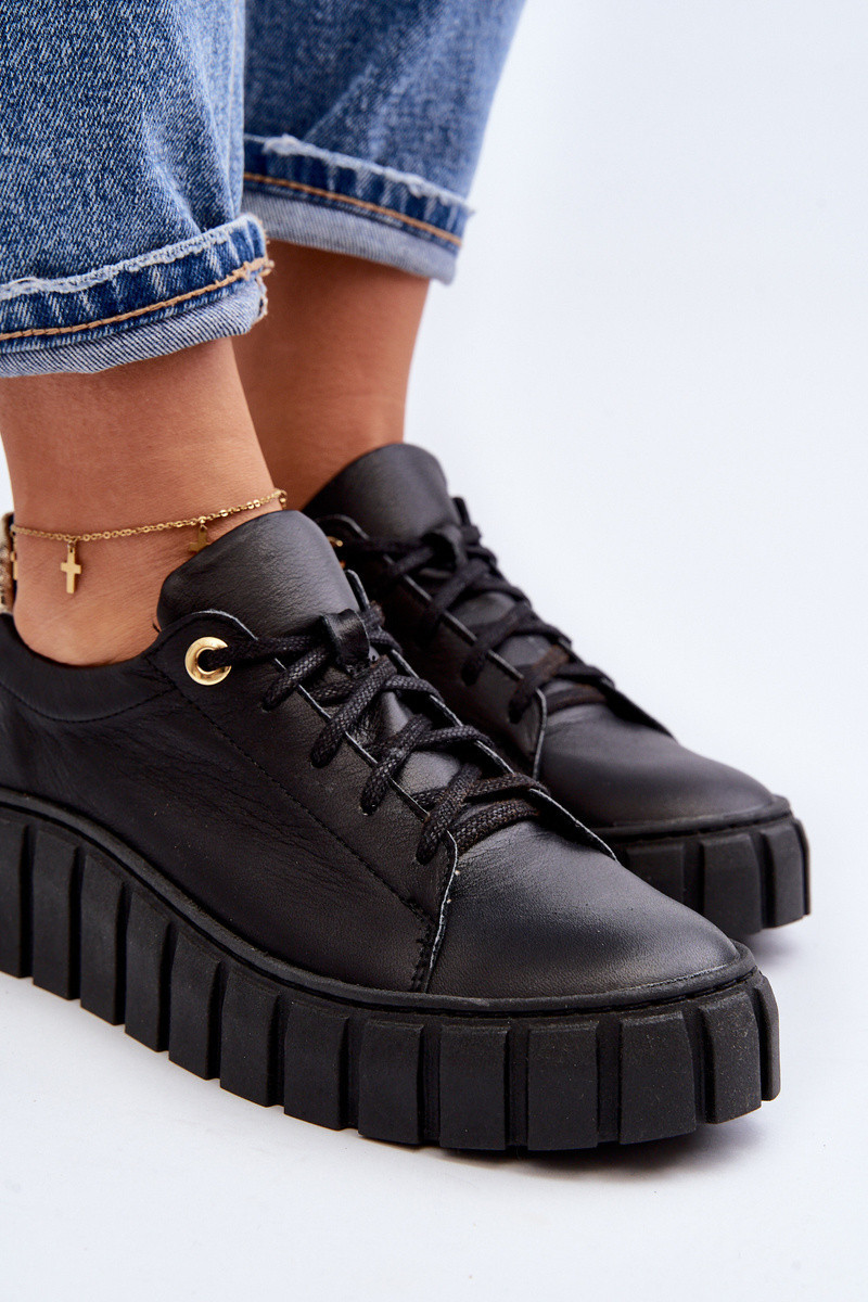 Dámská kožená polobotka na tlusté podešvi Zazoo 2919 černá
