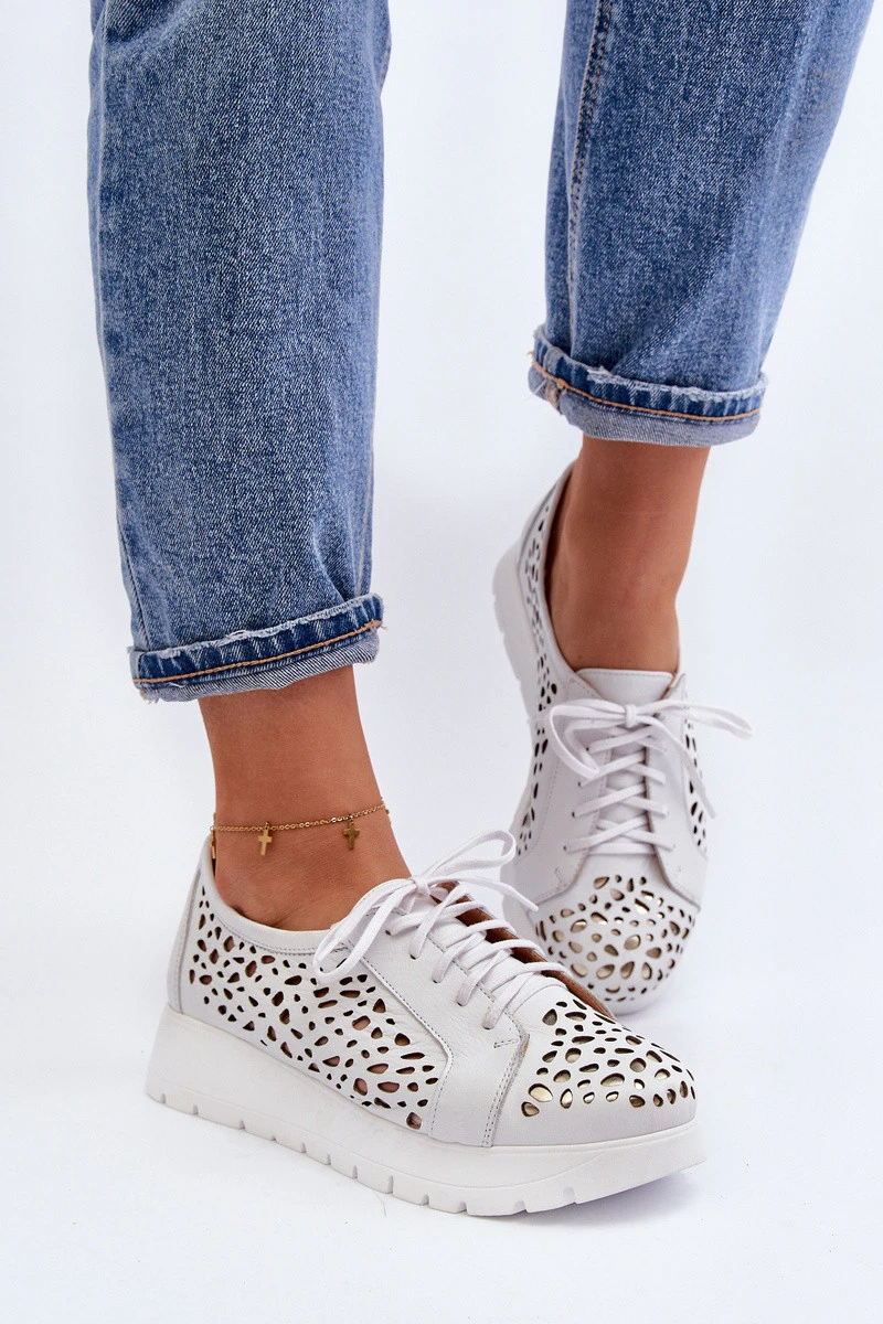 Dámská kožená polobotka s ažurovým vzorem Zazoo 2821 Světle šedá