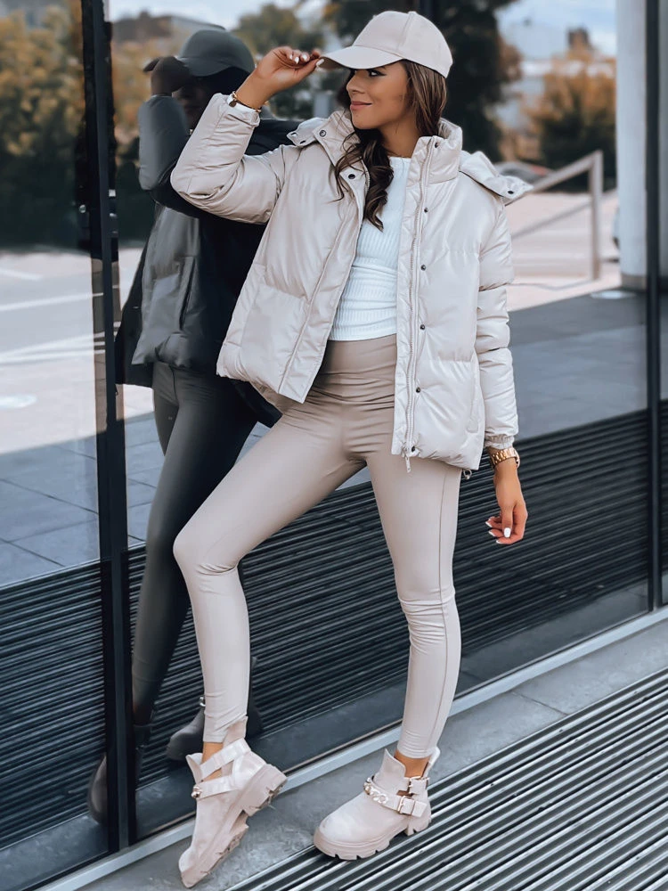 Dámská kožená přechodná bunda COLLAR beige FashionStreet TY3763
