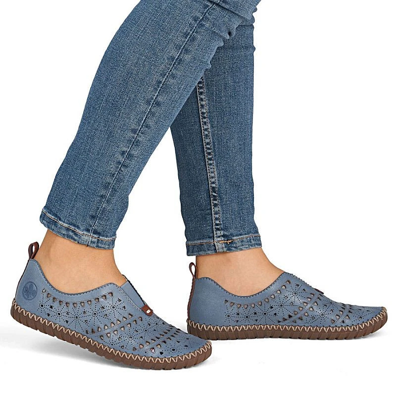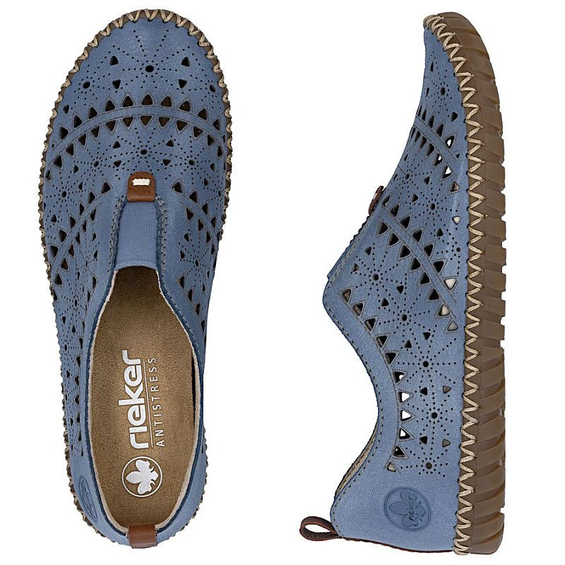 Dámská kožená prolamovaná modrá polobotka Rieker M2852-12